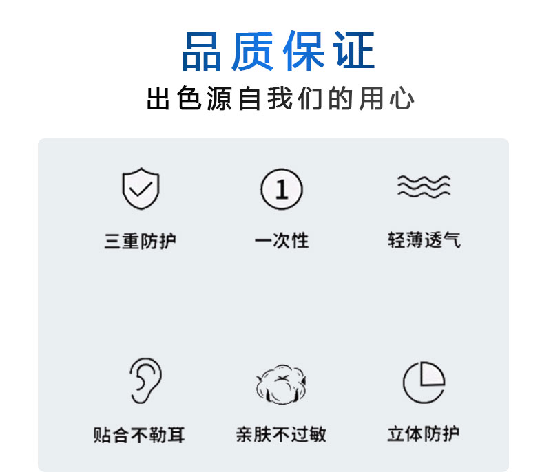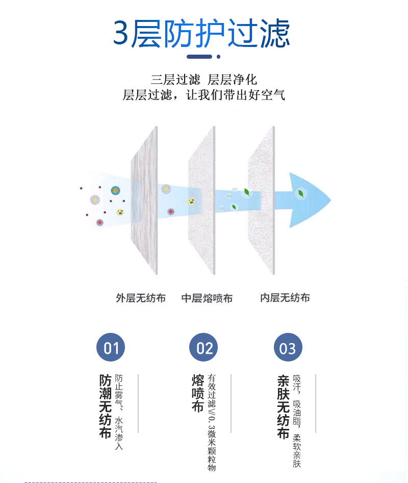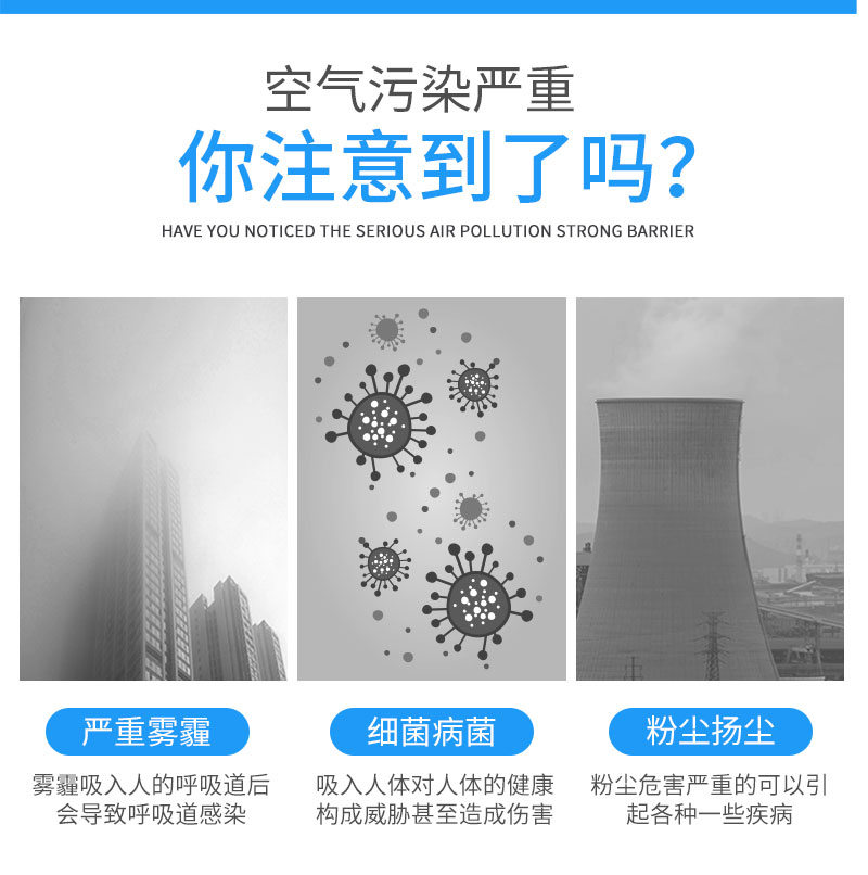 | 功能 | 有效防護各種粉塵揚塵、細菌、PM2.5等 | |